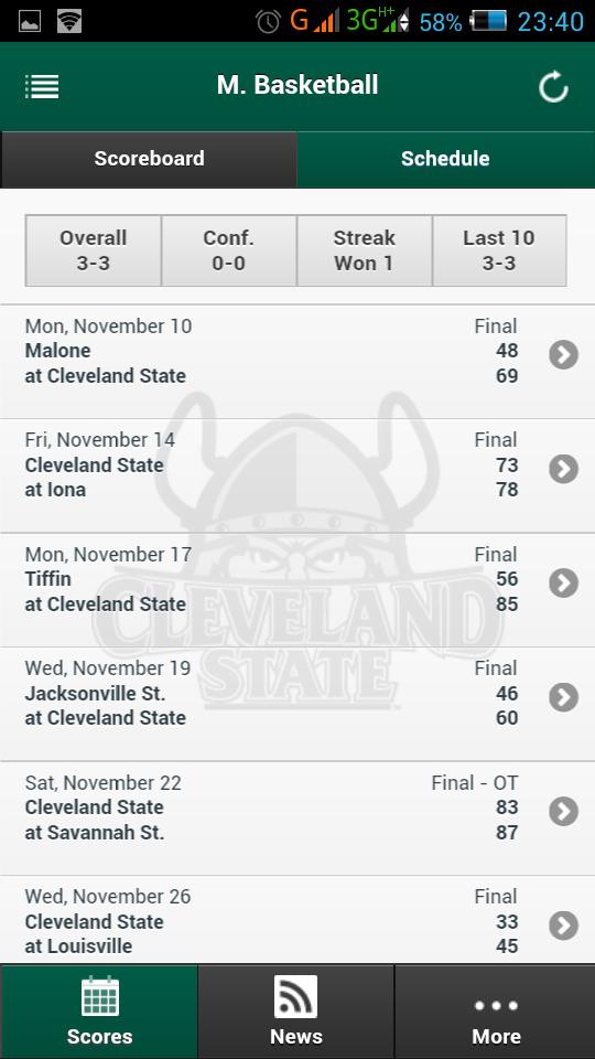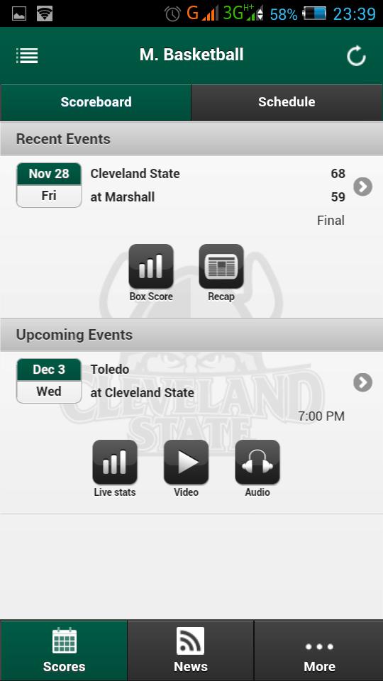 Die mobile App von Prestosports in Zusammenarbeit mit der Cleveland State University erstellt und bietet den Fans zu Zugriff auf Score -Updates, Statistiken und Spiele.