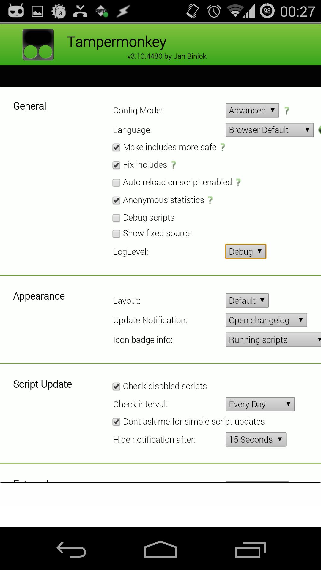 Bitte beachten Sie, dass Tampermonkey UC noch im Beta -Zustand ist, sodass die Stabilität von Ihrer Android- und UCWEB -Version und Ihren Einstellungen abhängt.