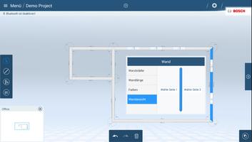 · Präzise dimension gezogene Objekte aufgrund der schnellen Übertragung von gemessenen Werten über Bluetooth vom GLM 100 C -Profi zum Tablet. Messwerte können auch manuell mit der Tablet -Tastatur eingetragen werden. Es ist daher möglich, die App ohne GLM 100 C -Profi zu verwenden.