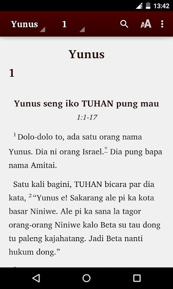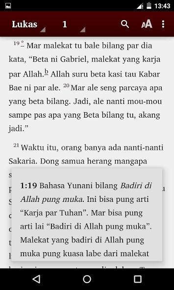 Erste Ambonse Malay Bible App für Android. Die aktuelle Version (1.5) enthält Teile des Alten Testaments (Ruth, Esther, Daniel, Jonah) und Neues Testament in Ambonse Malaiisch. Absolut kostenlos zum Herunterladen und Gebrauch erhältlich.