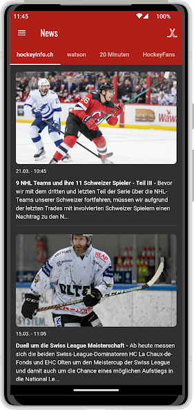 Wenn Sie möchten, können Sie in der Mitte der Aktion Recht haben und alle Ergebnisse in Sekundenschnelle als Push -Nachricht erhalten. Sie werden also immer live und aktuell über den Status Ihres Lieblingsteams informiert. Aktuelle Nachrichten bieten Ihnen auch die neuesten Informationen zum Schweizer Eishockey.