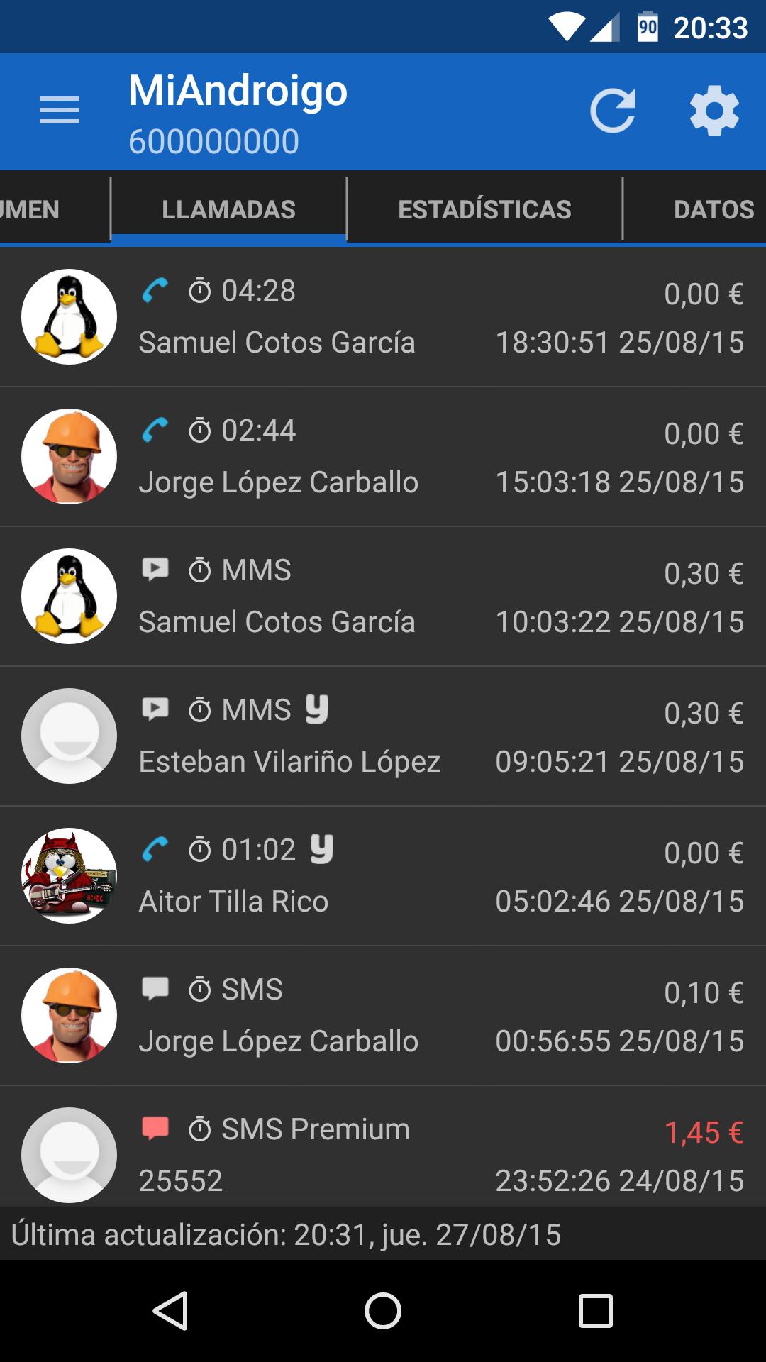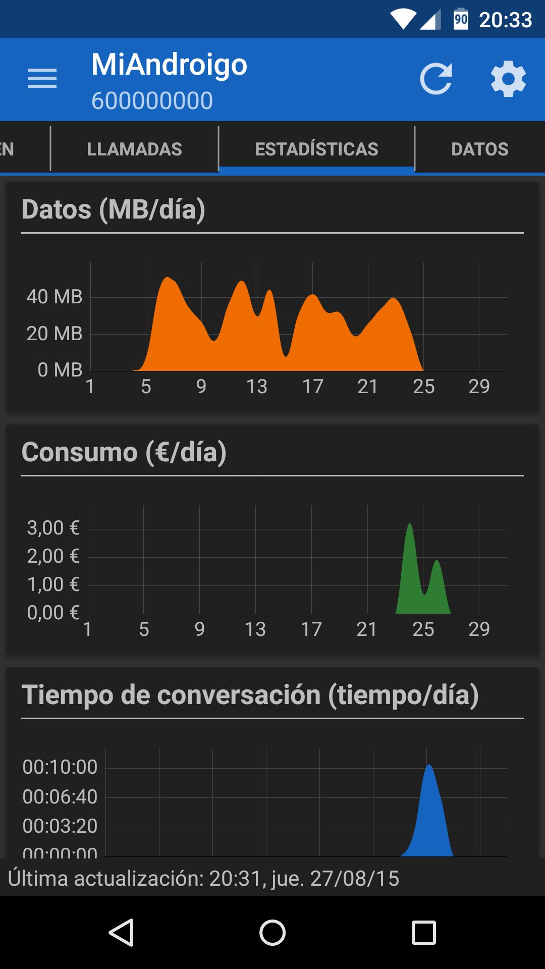 MiAndroigo können Sie Ihre Billing -Informationen für Yoigo -Kunden überprüfen.