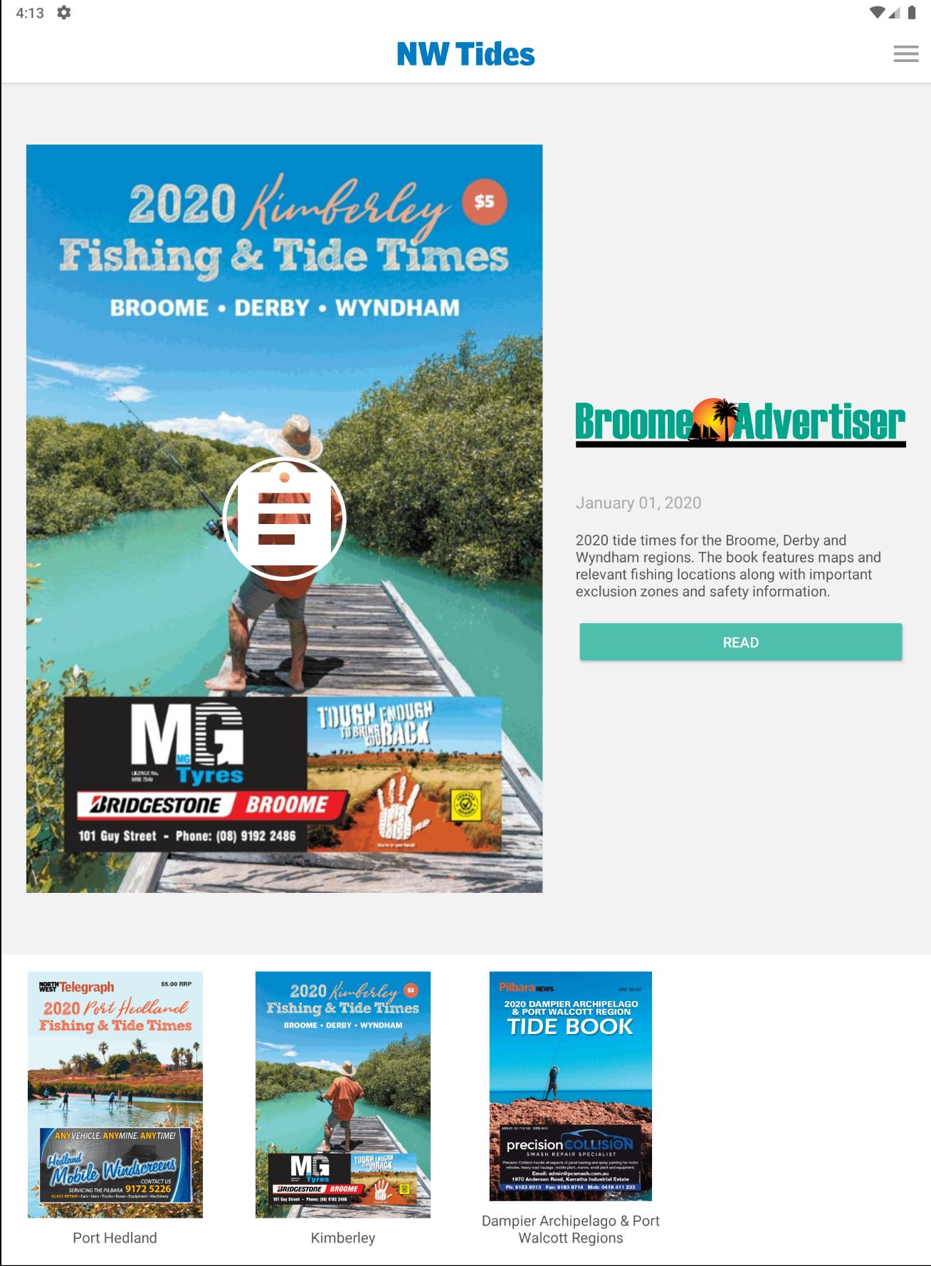 Die NW Tides App wird im Zeitraum von 12 Monaten im Zeitraum von 12 Monaten 3 separate Produkte enthalten. Die Tidal Information reichen im Nordwesten Westaustraliens von Wyndham, Derby und Broome im Kimberley nach Port Hedland, Port Walcott und dem Dampier Archipel in der Pilbara.