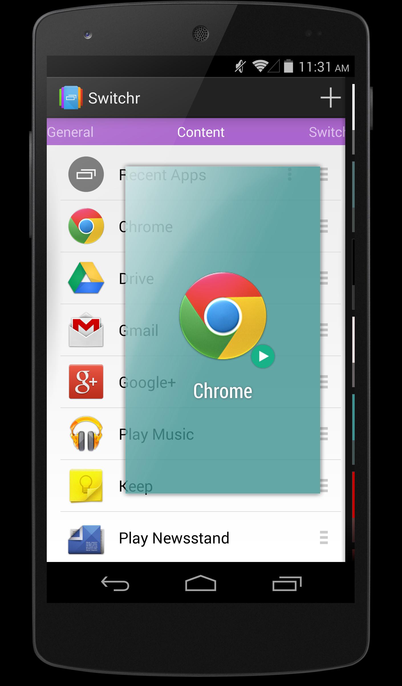 Switchr wird in all seiner App -Switching -Ruhm geliefert, wobei der Großteil seiner Funktionen kostenlos gewährt wird. Mit dem installierten Pro -Schlüssel werden jedoch alle Einstellungen freigeschaltet, sodass Sie jeden Aspekt des App -Switching -Erlebnisses anpassen können. Switchr Pro können Sie Apps in Echtzeit wechseln, laufende Apps mit Gesten schließen, die Seitenleiste mit Switchr Slide verwenden, die Benutzeroberfläche und die Animationen ausführlich anpassen, sie von der unteren Kante aus auslösen, Root -Funktionen wie Halo, konfigurieren Sie Blacklists/Whitelists nach Ihren Wünschen, zeigen Sie eine unbegrenzte Menge an Inhalten, und vielem mehr. Holen Sie sich jetzt! http://bit.ly/switchrpro