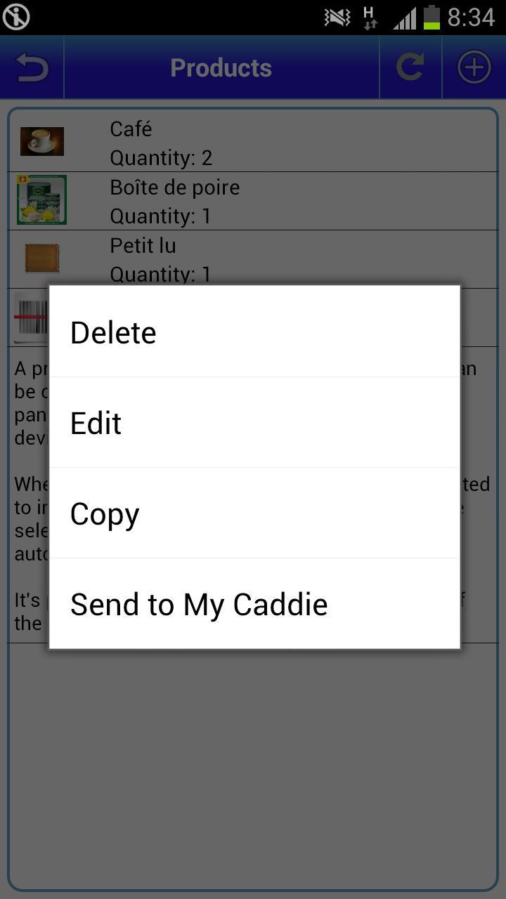 - Und große Neuigkeiten können Sie diese App mit der App My Caddy (Lebensmittelliste) synchronisieren. Wenn Ihre Speisekammer leer ist, können Sie den Inhalt in meinem Caddy senden und wissen, was kaufen.