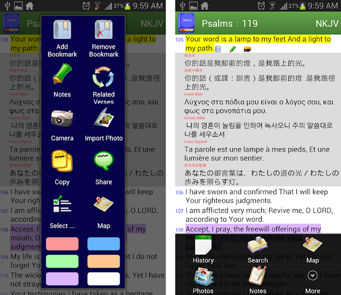 ★ Agregar marcador/nota/foto, copias y funciones de compartir se limitan solo al Nuevo Testamento