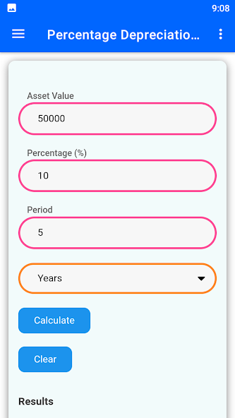 Depreciation Calculator porcentual (saldo declinante):
