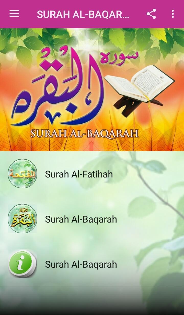 Surah Al Baqarah Un total de 286 versos cayeron en Medina, que se reveló en gran medida a principios de año de la Hijrah, excepto que el versículo 281 fue revelado en Mina en el Hajji wadaa '(el último profeta Muhammad Hajji). Todo el verso de Surah Al Baqarah, incluido el Madaniyyah, es el capítulo más largo de los capítulos coránicos en los que existe el verso más largo (versículo 282). Esta Surah se llama Al Baqarah porque contiene la historia de la matanza de la vaca que Allah ordenó a los hijos de Israel (versículo 67 a 74), donde el personaje judío se explica en general. Llamado Fusthaatul-Quran (pico del Corán) para cargar algunas leyes no mencionadas en otras Surahs. Alif-Laam-Miim también se nombra porque esta carta comienza con Alif-Laam-Miim.