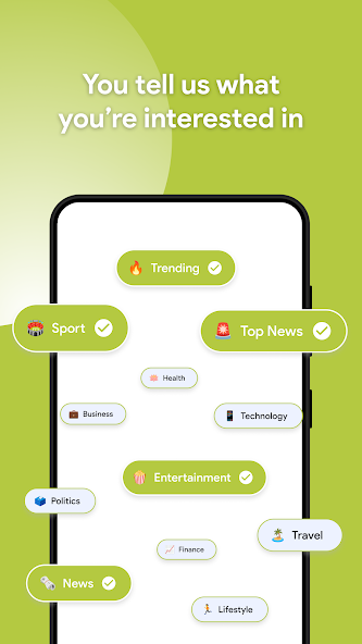• Usted elige qué temas le interesan, y le mostramos las últimas noticias que le encantará. Los temas incluyen: negocios, entretenimiento, comida, juegos, salud, política, deportes, estilo, tecnología, viajes, noticias estadounidenses y noticias mundiales.