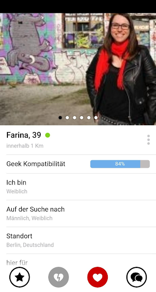 ¡Lo que encontrará es un verdadero y humano geeks que buscan a alguien con quien compartir sus vidas y botín! Cada (!) Perfil es revisado por nuestro equipo para asegurarse de que sea real. Eso es mucho Wörk, Wörk, Wörk para Heidi, nuestra moderadora ... y ella ama cada minuto. Esto significa que es posible que tenga que esperar un poco antes de que se apruebe su perfil. Pero si te tomas en serio la búsqueda de un compañero geek, creemos que la demora vale la pena.