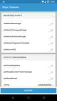 ONYX Camera es una aplicación utilizada para demostrar la potencia de la biblioteca de software Onyx. La interfaz de usuario de esta aplicación muestra todas las opciones de configuración para el kit de desarrollo de software Onyx. Onyx utiliza la cámara trasera existente para capturar y coincidir con la huella digital de un usuario con una inscripción de huellas digitales existente.