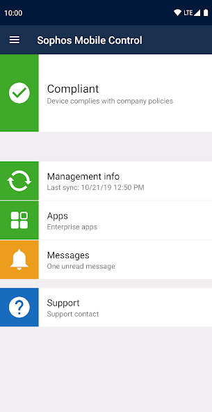 Sophos Mobile es una solución de gestión de punto final unificado (UEM) que permite a las empresas administrar, controlar y asegurar fácilmente los dispositivos Android, iOS, MacOS, Windows 10 y Chrome (como Chromebooks) desde una sola consola web. La aplicación Sophos Mobile Control le permite inscribir su dispositivo con Sophos Mobile. Su organización puede configurar las políticas del dispositivo, distribuir aplicaciones y asegurar aún más su dispositivo.
