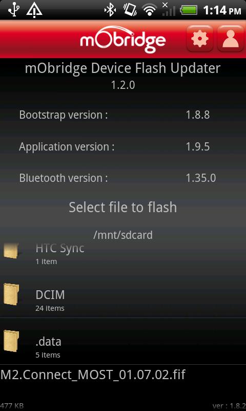 Disponible para la mayoría de los vehículos con conexión y CAN, esta aplicación le permite configurar su configuración de audio Bluetooth mObridge y actualizaciones de firmware a través de nuestro sitio web o desde su tarjeta SD.