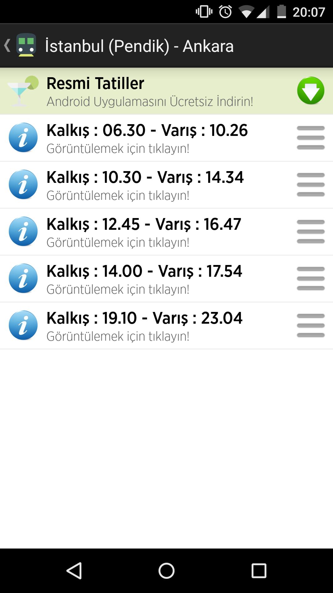 El tren de alta velocidad Ankara, Estambul, Eskisehir y Konya, las salidas y los tiempos de llegada en esta aplicación.