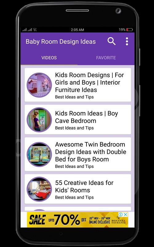 En esta aplicación encontrará videos para ideas de habitaciones para bebés. Hemos reunido videos de calidad HD para ideas de diseño de habitaciones para bebés y cómo uno puede beneficiarse y preparar sus propias ideas de diseño de habitaciones para bebés. Haga ideas de sus habitaciones para bebés con un presupuesto con la ayuda de esta aplicación. Puedes ver hermosas ideas de habitaciones para bebés, etc.