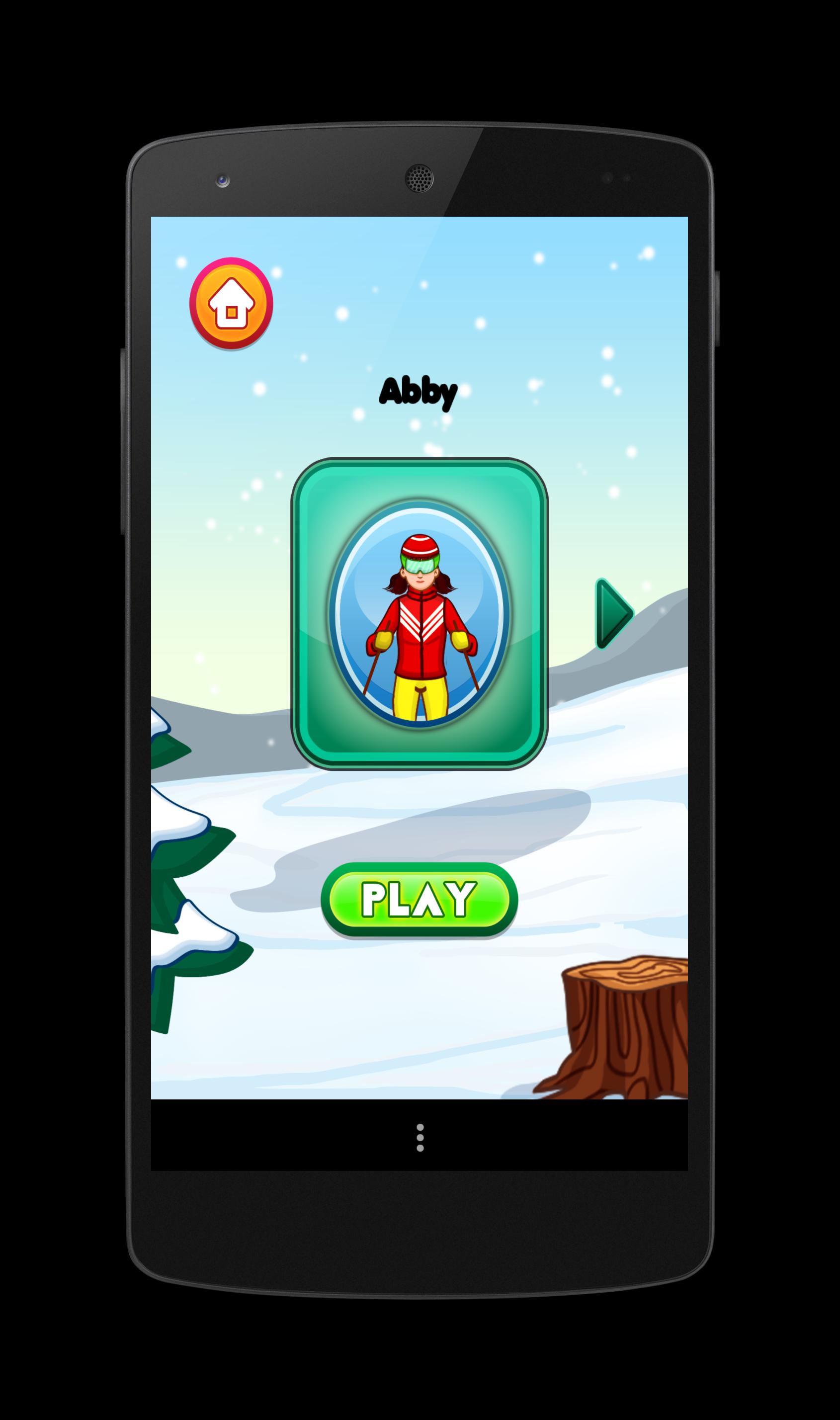• Elija entre varios personajes masculinos o femeninos, cada uno vestido con diferentes atuendos de esquí.
