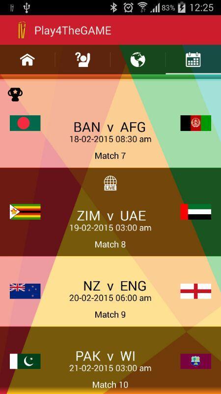Mire el partido de cricket en vivo que se desarrolla en sus pantallas de TV y al mismo tiempo jugar con el mundo para adivinar quién ganará el partido. Cuanto mejor sean sus predicciones y más jugará, más será el puntaje y mejor será su ranking mundial. ¿Suena interesante? Sí, ¿quieres ser el hombre del partido o el hombre de la serie? Entonces así es como se juega.