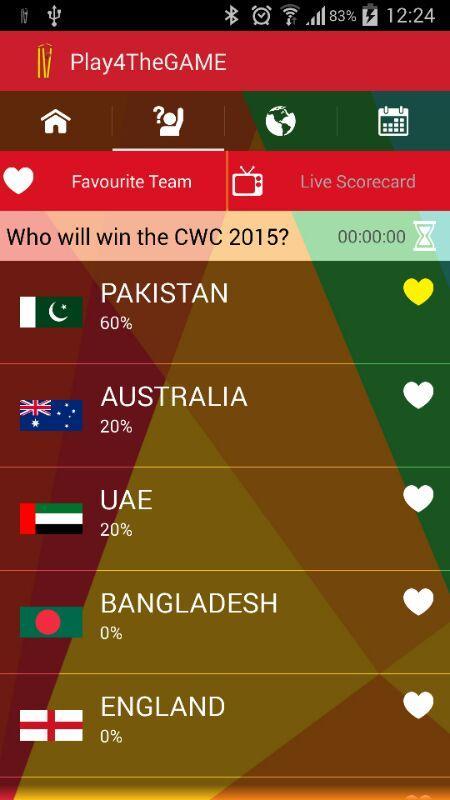 2. Otra pregunta sobre la que se le preguntará es hacer una predicción sobre quién ganará el partido en vivo actual. Se aplican las mismas reglas. Una vez respondido, no puede volver a menos que pensemos que sería mejor si cambia su respuesta para obtener más puntajes :)