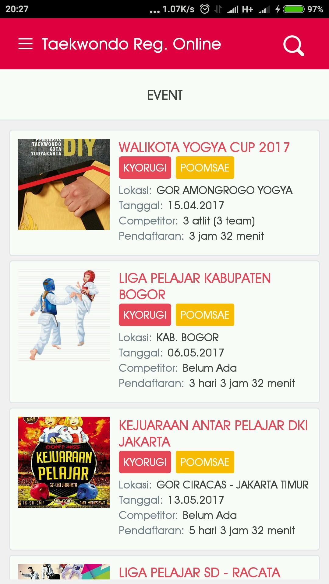 Est une application pour enregistrer des athlètes en ligne pour les événements de Taekwondo en Indonésie.October 19, 2025