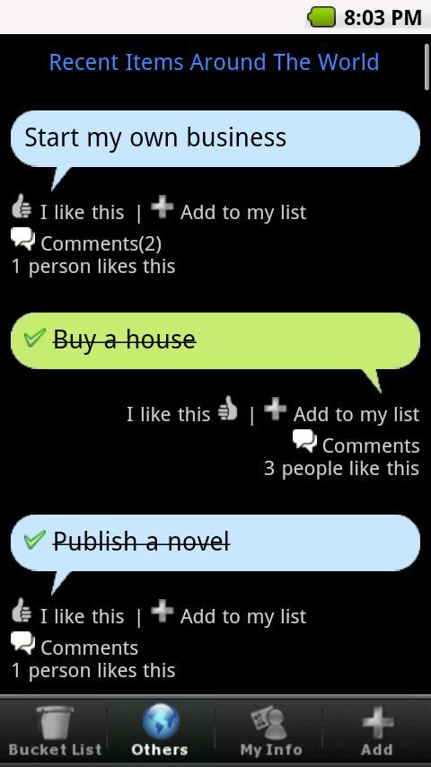 Gardez une trace de votre liste de choses à faire / seau. Voyez ce que les autres mettent dans leurs listes.
