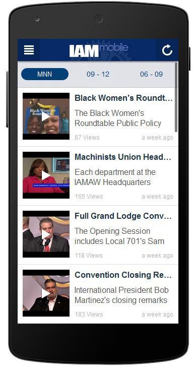 IAM Mobile 4.0 combine toutes les fonctions en ligne populaires de l'IAM telles que l'IAM Journal, The Machinist News Network On Demand Video Service, la page Web IAM GOIAM.org, Imail, une galerie de photos IAM, la page Facebook IAM et bien plus encore dans une application facile à accès pour les tablettes et les smartphones.