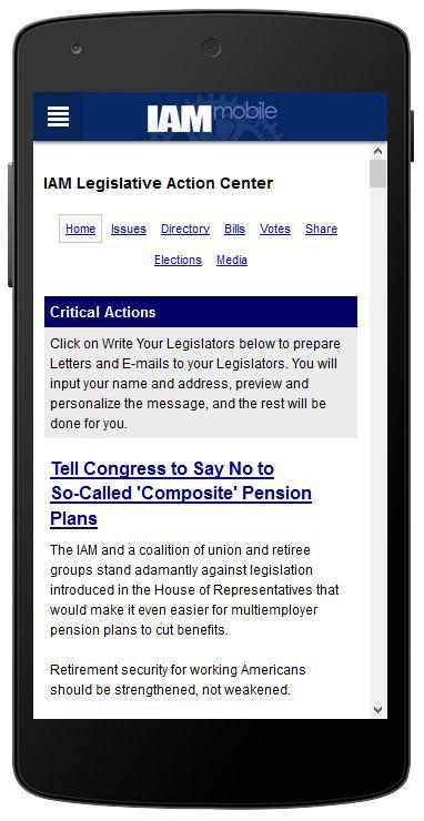 IAM Mobile 4.0 offre plus de fonctionnalités et plus de fonctions pour obtenir et partager des informations sur notre syndicat et les problèmes importants auxquels nous sommes confrontés en tant que familles de travailleurs. Je vous invite à profiter pleinement des opportunités du nouveau IAM Mobile 4.0 .