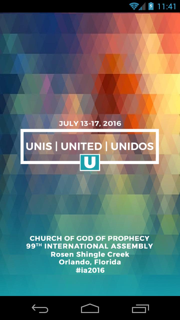 L'Église de Dieu de Prophecy se réunit à Orlando, en Floride, États-Unis du 13 juillet 2016 au 17 juillet 2016. Le Rosen Shingle Creek Resort est le lieu de la réunion biennale. «United» est le thème de cette 99e International Assembly .