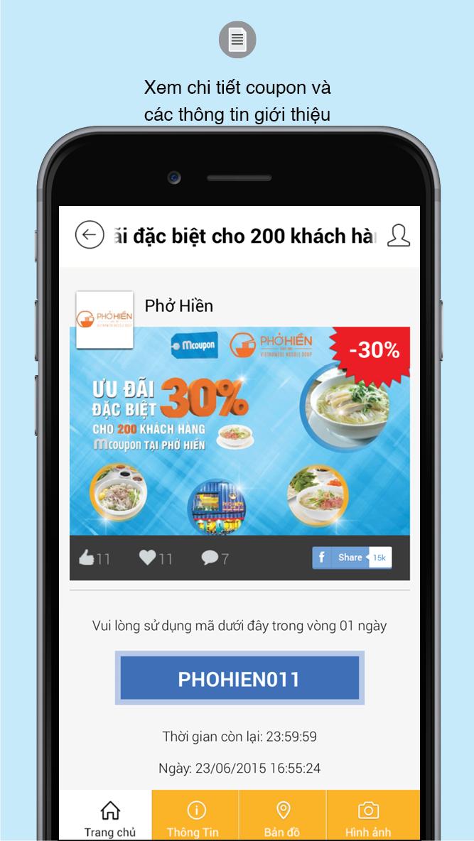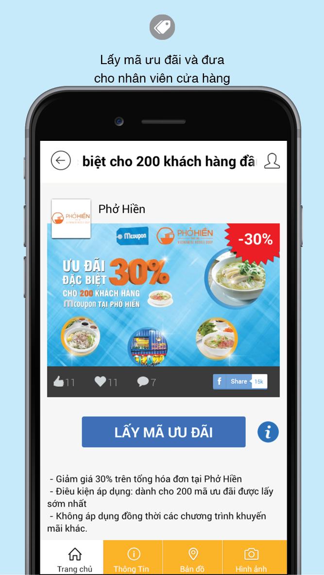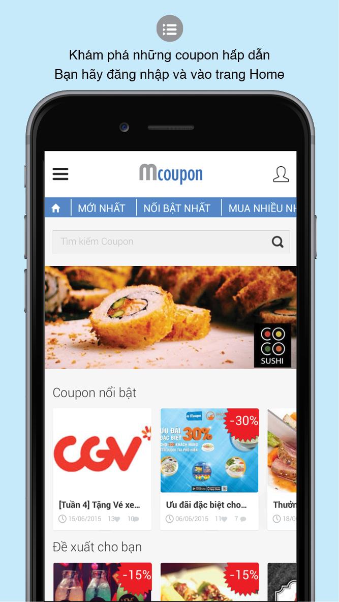 Mcoupon est l'application qui fournit les promotions des marques populaires au Vietnam chez F&B, le shopping, le divertissement, la beauté, l'éducation et d'autres catégories. L'utilisateur peut profiter des promotions par E-Coupon et participer à nos activités interactives dans l'application