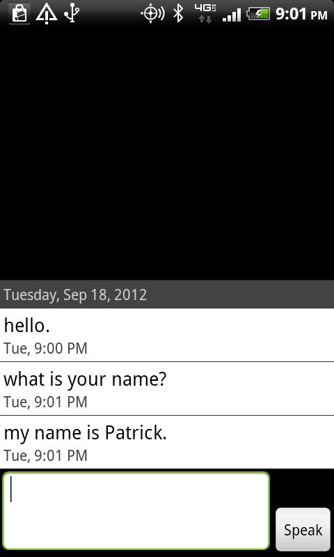 Une histoire de tout ce que vous avez «parlé» jusqu'à présent est répertoriée. Le taraudage sur un élément l'amène dans la boîte d'édition afin que vous puissiez le modifier ou le rejouer. L'utilisation de la liste d'historique pour dire des choses que vous avez déjà dites vous évite d'avoir à le retaper.