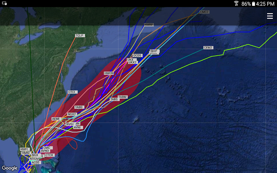 - Option pour montrer les tempêtes comme "Track and Cone", "Best Track", "Combined" ou "Track Model".