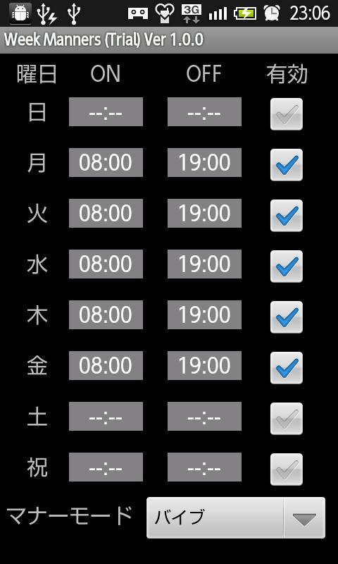 Week Manners Trial est le mode de contrôle de manière application / désactivation de l'application par jour.