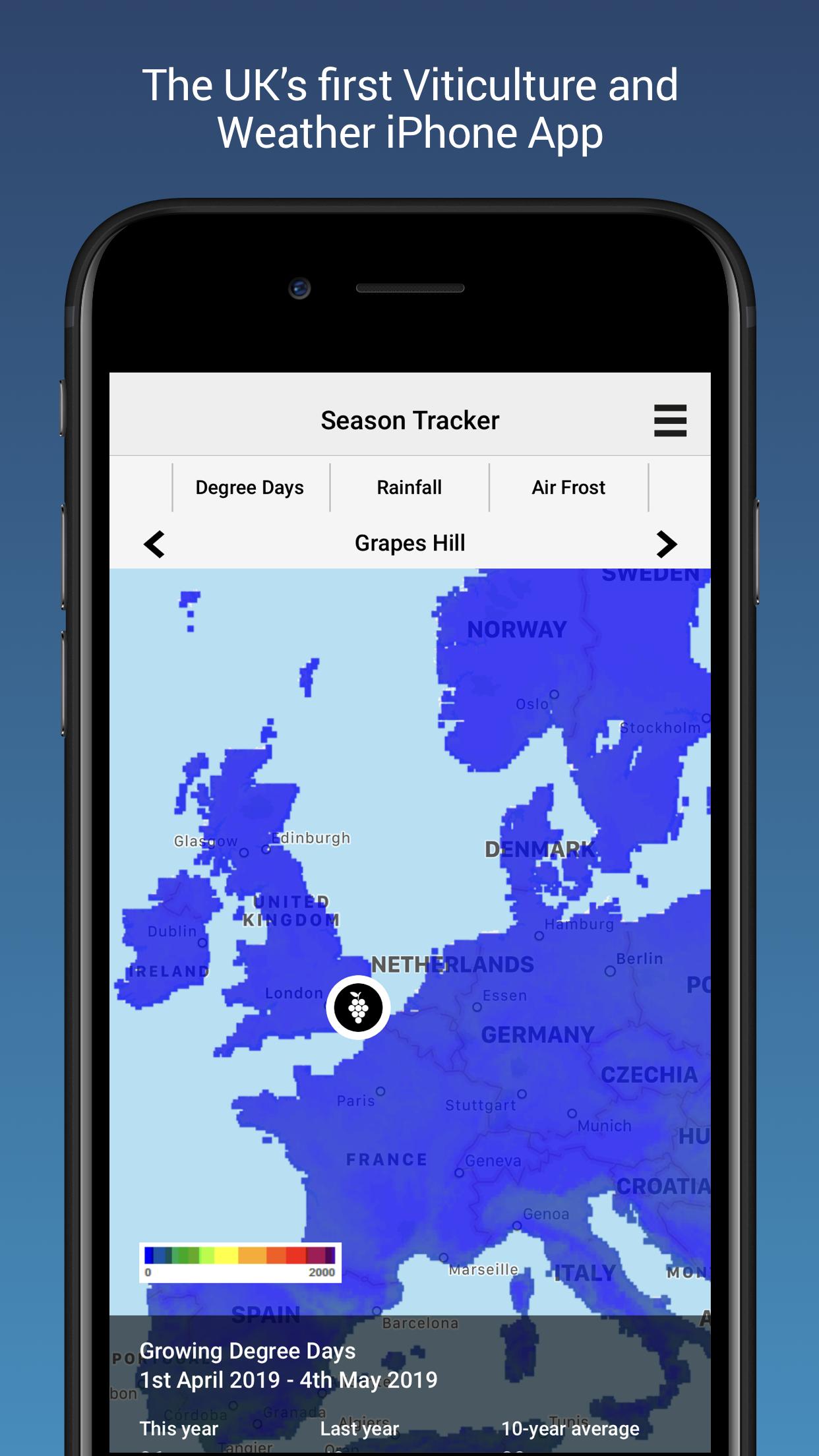 + Suivez votre saison: Voir les données météorologiques nationales, régionales et vignobles pour suivre comment la saison progresse: une moyenne à 10 ans et l'année précédente.