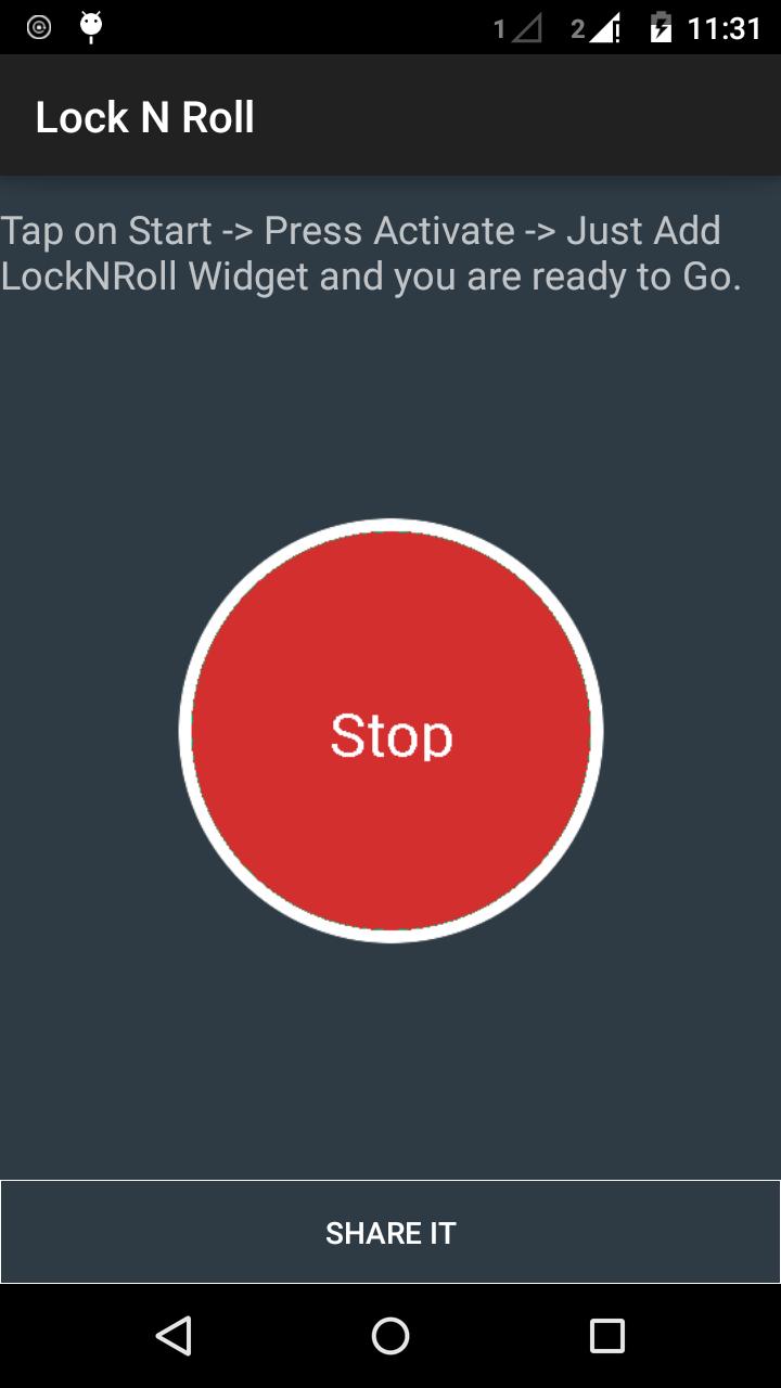 Il est très facile d'utiliser l'application. Accédez simplement à l'application -> Appuyez sur Start -> Activer ----> C'est tout ce que vous avez fait. Maintenant, accédez à votre écran d'accueil et ajoutez le widget Lock N Roll . Appuyez sur le widget pour verrouiller votre écran et après cela, vous avez juste besoin d'incliner / récupérer votre appareil et vous obtiendrez votre écran de verrouillage sans appuyer sur "Bouton d'alimentation".
