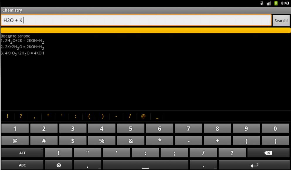 Attention! Les lettres de cas dans la requête affectent le résultat. Autrement dit, si vous entrez "Naoh", à la suite d'une réaction avec la participation de "Naoh" ne sera pas trouvé!