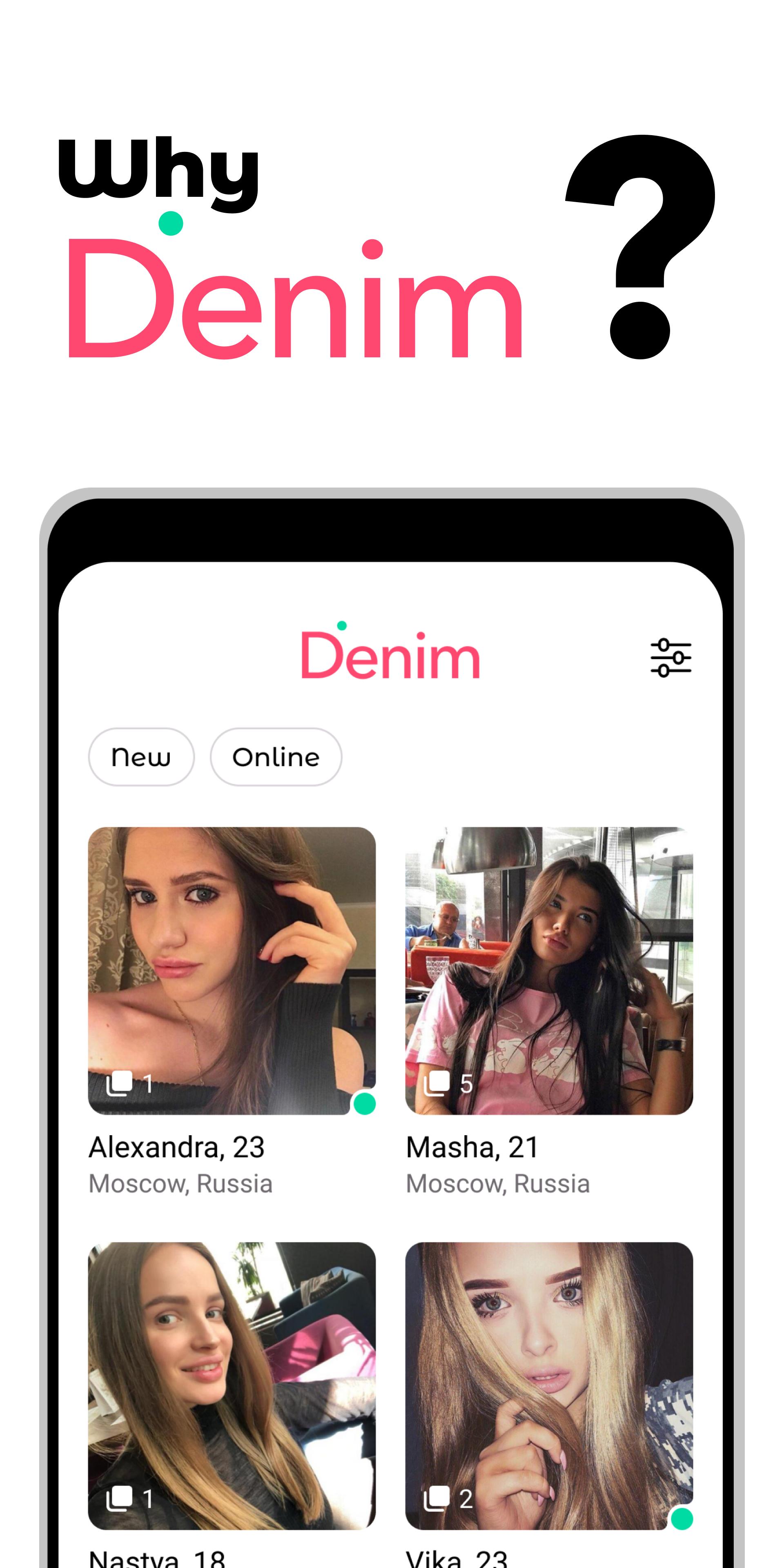 Denim est un moyen simple et sûr de rencontrer de nouvelles personnes! Vous pouvez sortir avec des hommes et des filles à proximité ou vous connecter avec eux dans le monde entier. Rencontrer des étrangers n'a jamais été aussi rapide et facile. Exclusivement à Denim .