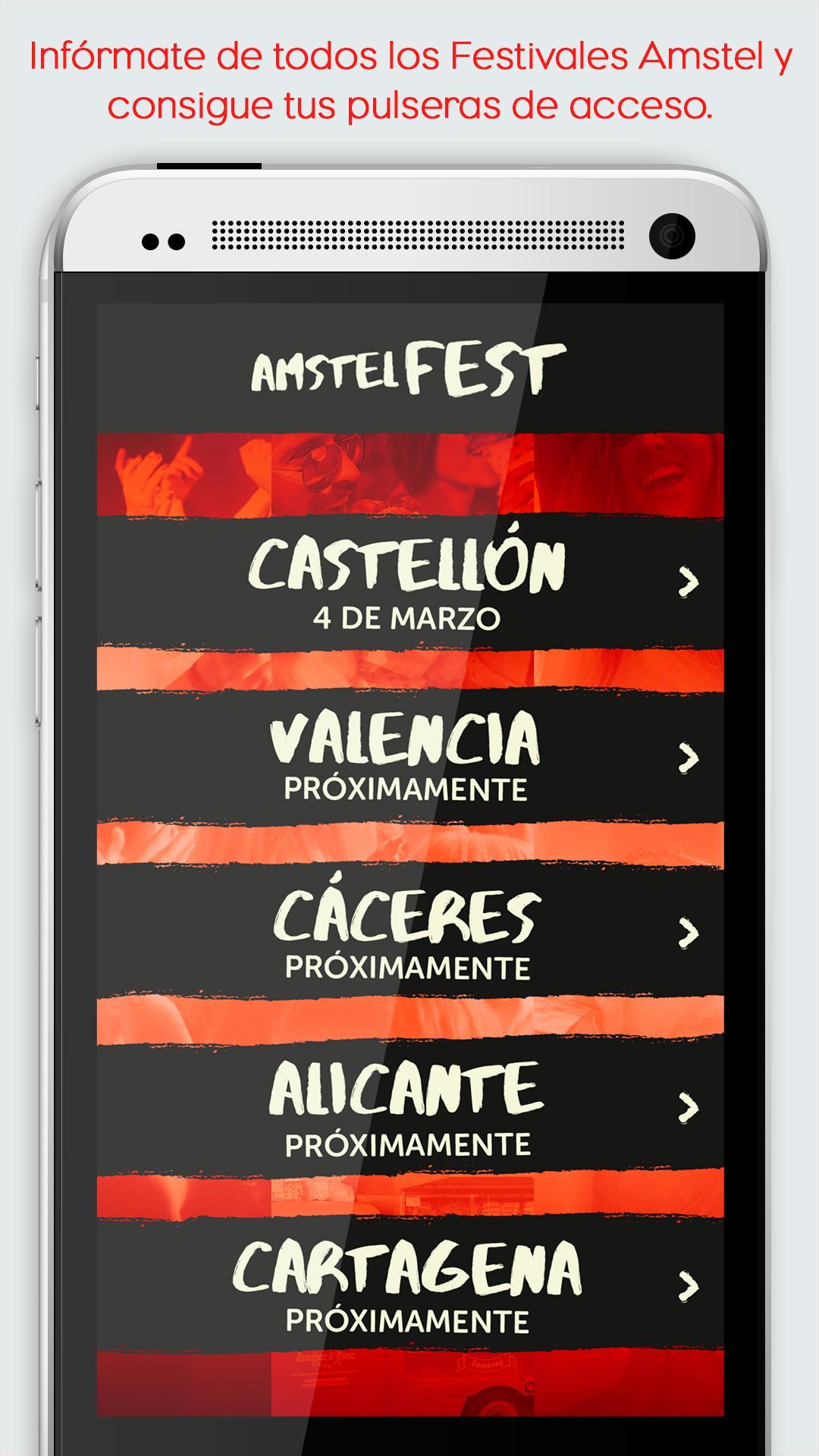 Profitez de tous les détails de chaque festival qu'Amstel a préparé pour vous dans toute l'Espagne. De plus, vous pouvez découvrir ce que vous avez à faire et où vous pouvez obtenir vos bracelets d'accès pour y assister gratuitement.