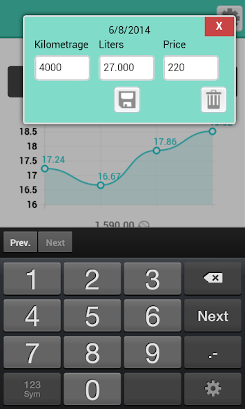 Insérez la distance que vous passez jusqu'à présent et la quantité de carburant que vous avez remplie.