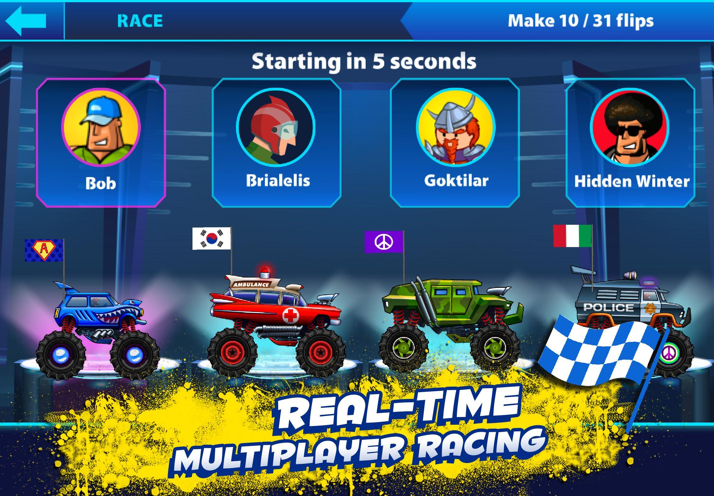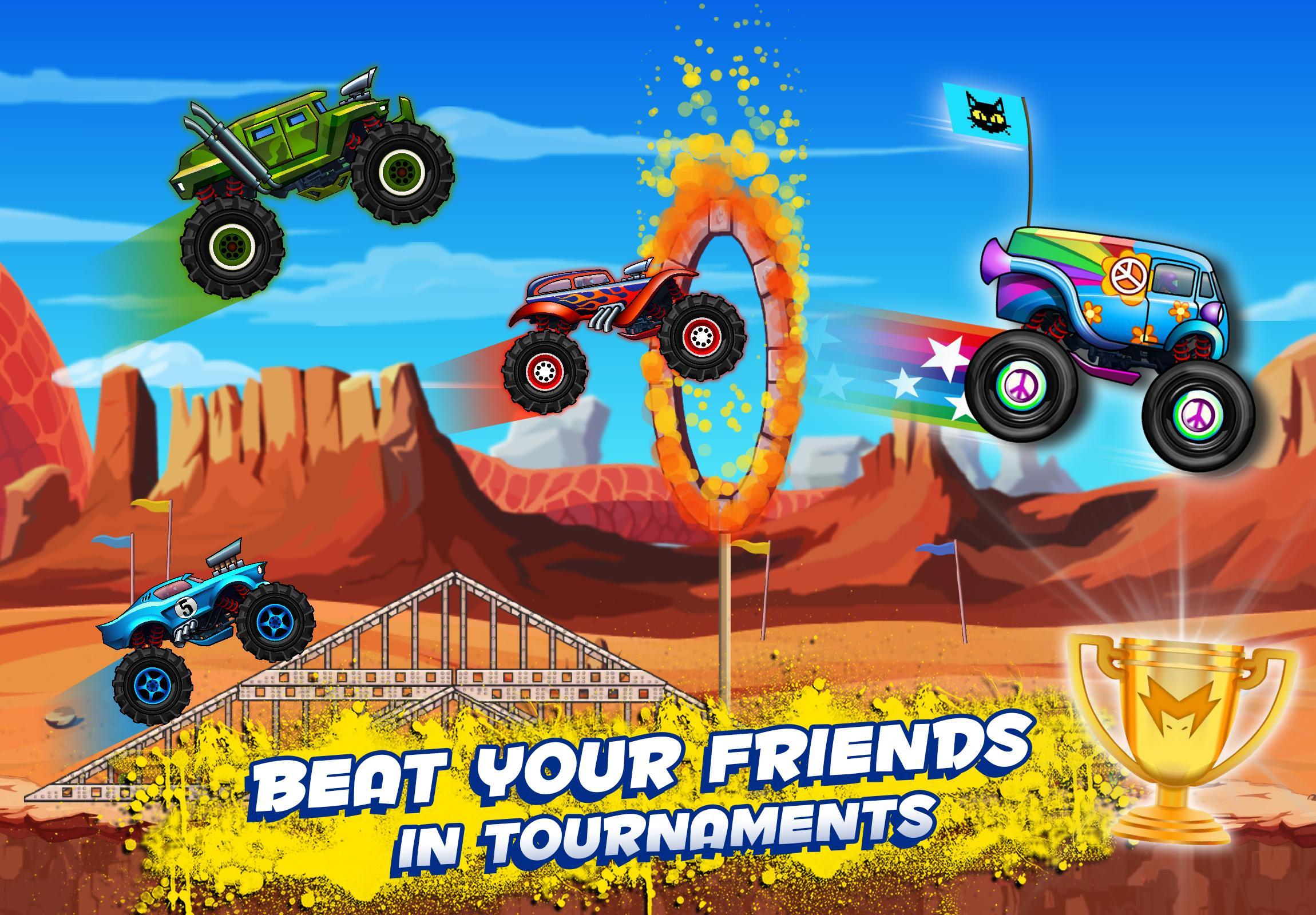 - Race monster trucks, big rigs, souped-up vans or other mighty vehicles