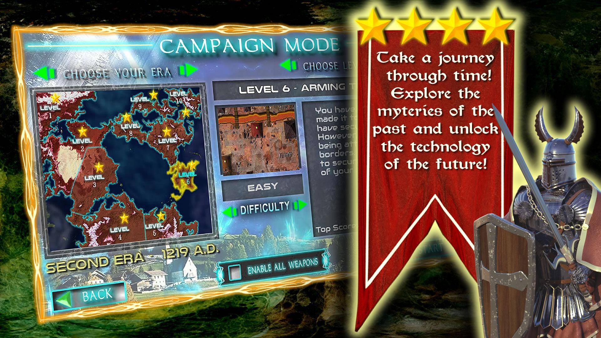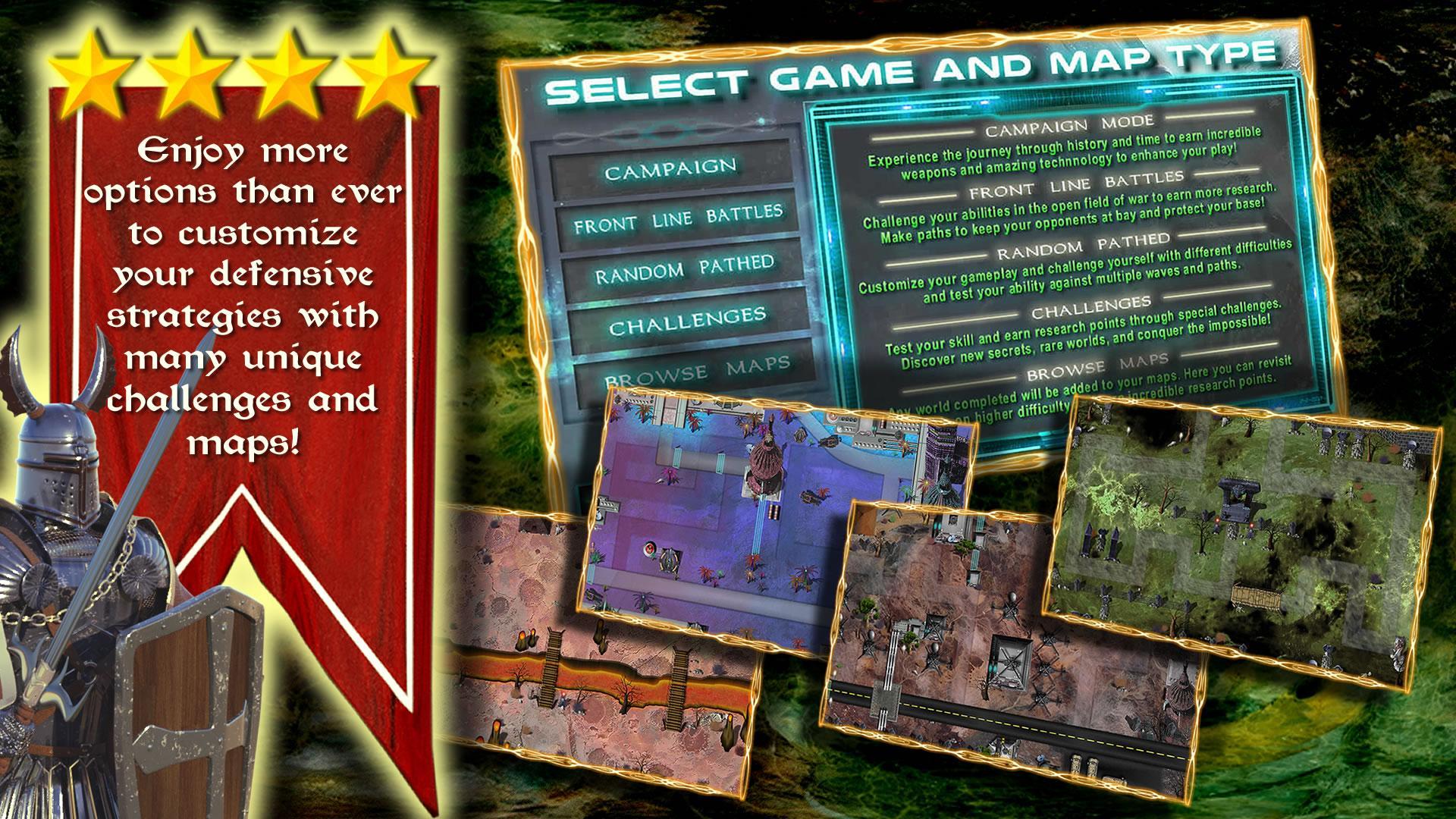Discover new defensive weapons and unlock technology to make them even more powerful. Discover new worlds and levels! Ascend through time from ancient Rome, through the dark ages, in to the present, and beyond! Discover intense challenges and unseen worlds with multiple game style modes and play! Strategic tower defense players will truly love this strategy war type simulation game.