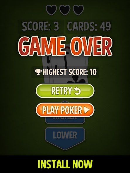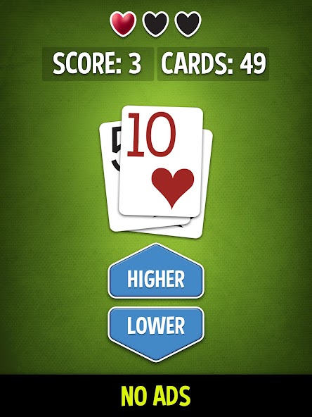 Gamble if the next card is higher or lower. You start with one suit in level 1 and more card suits and poker card decks are added once you reach higher game levels.