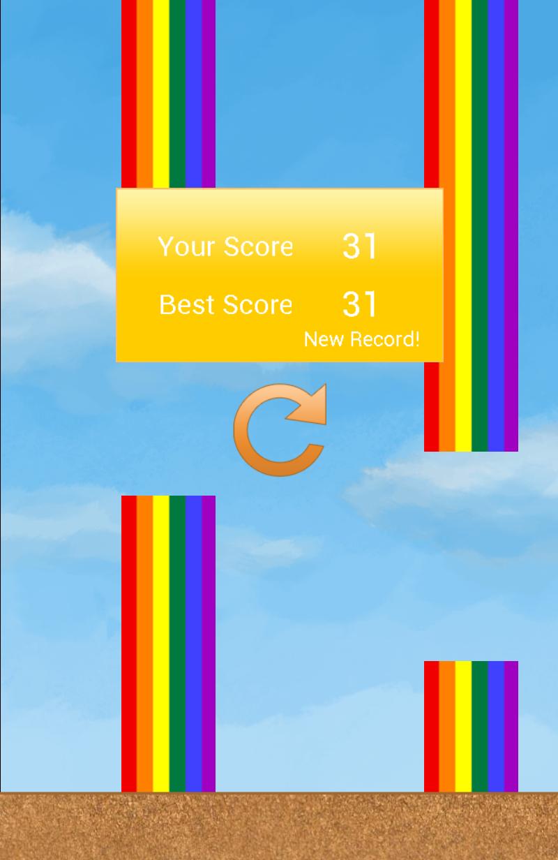 Tap to flap the banana over the rainbows coming from the left side. Reversed flappy game action! Can you handle it backwards?