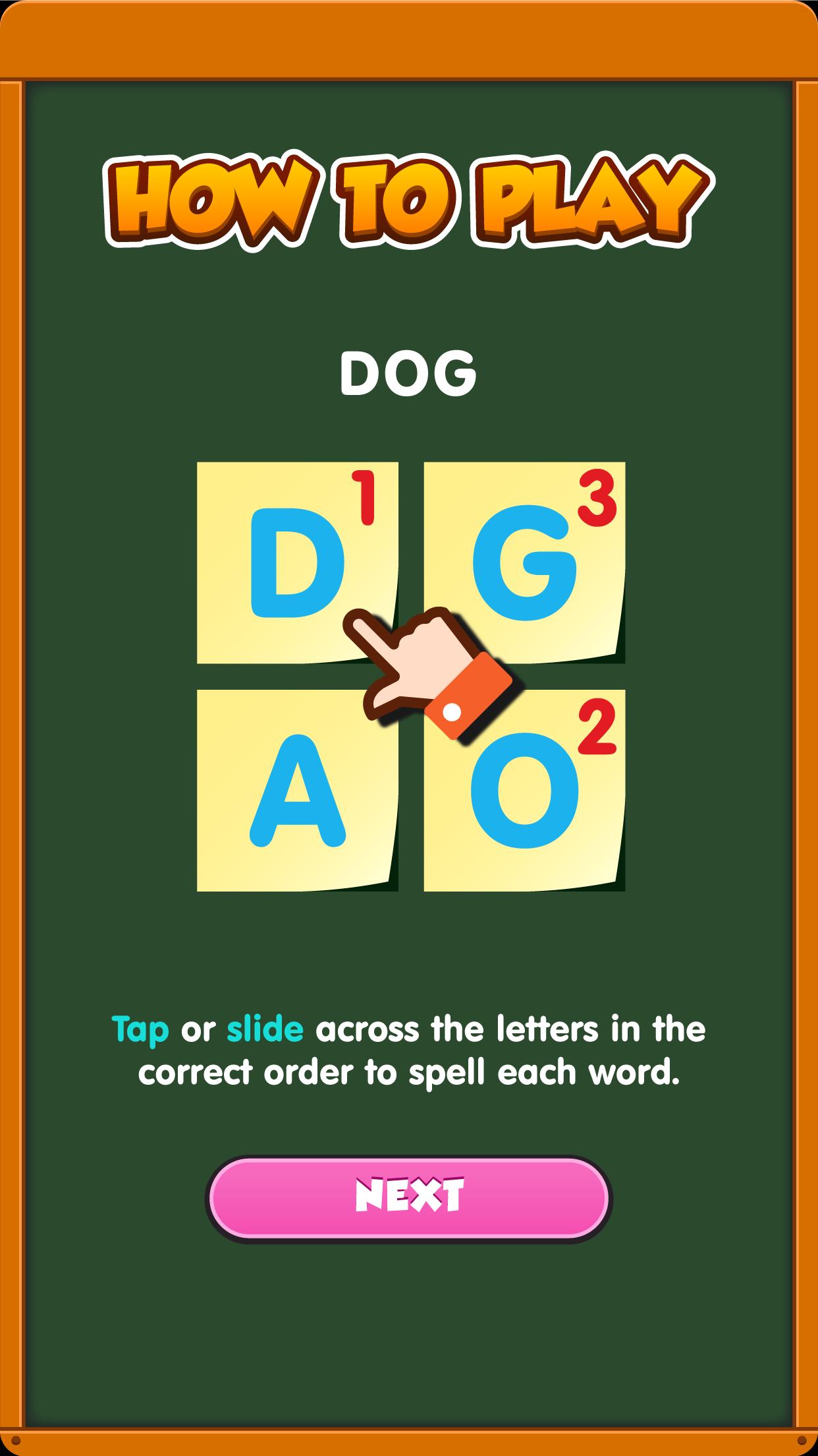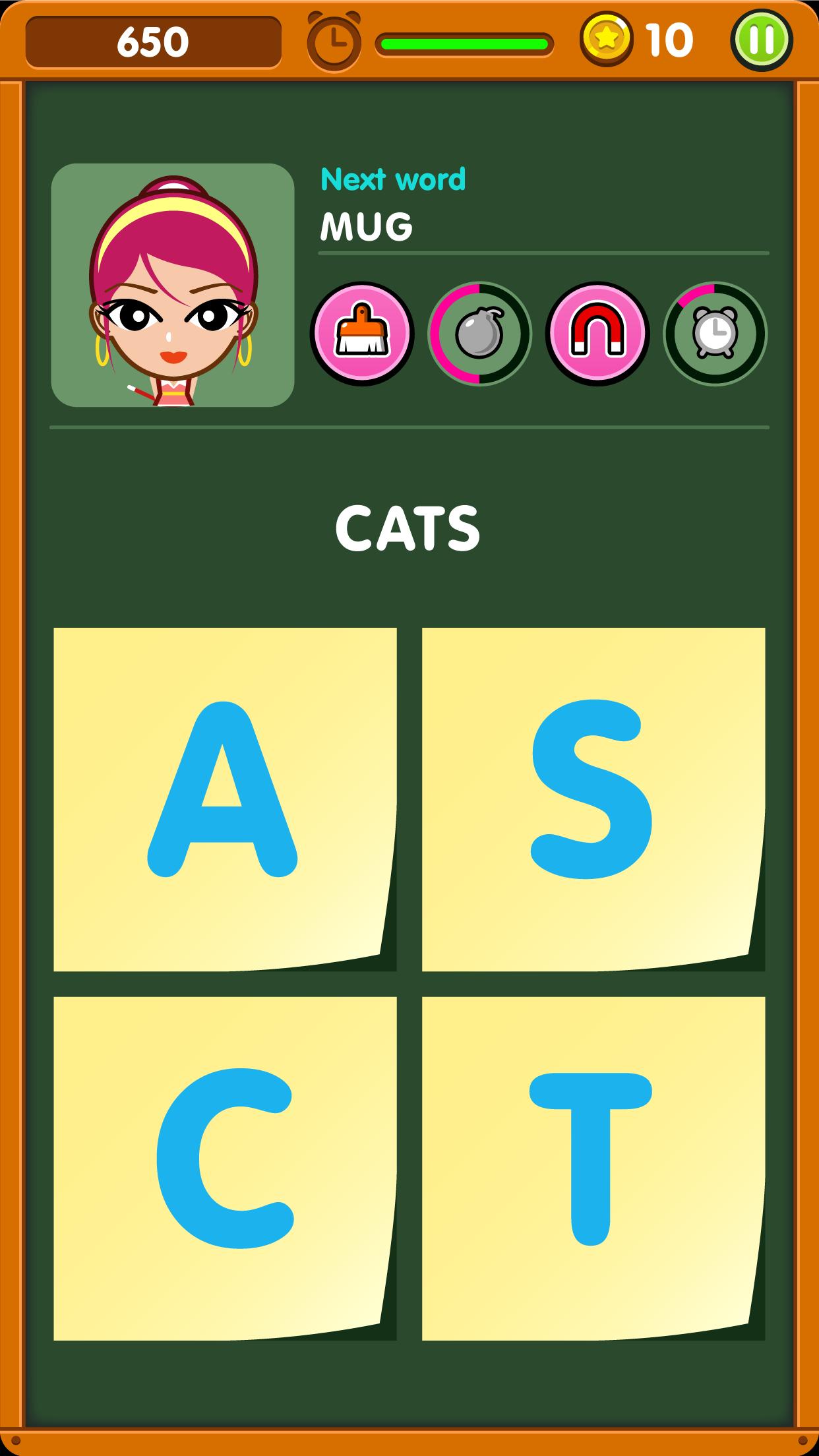 Spell as fast as you can before the time runs out! Trigger "Fever Mode" by spelling flawlessly to earn more points!
