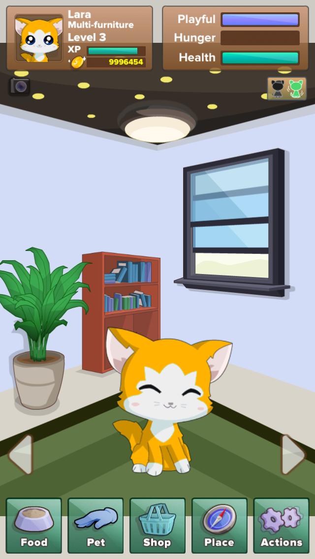 Your cute virtual cat with an advanced AI and lots of tricks and secrets to explore. Take care of your kitty, buy her food, clothes, play games and lots more. The pet cat can not only meow but also sleep, eat, gets dirty, and has multiple cat games available (unlock more games and locations with a higher level).