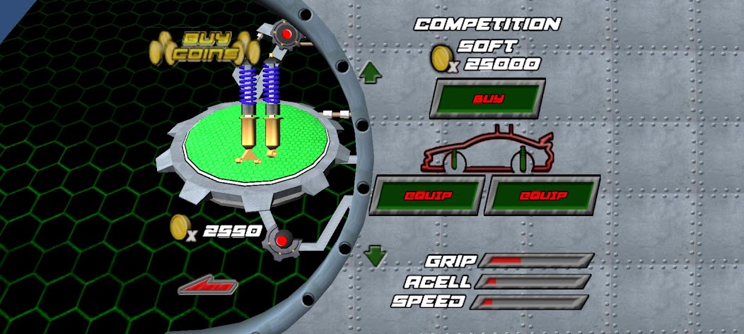 Race in more than 30 tracks and you have access car pieces like electric engines, chassis, suspensions, tires, wheels and many car shells, with over 1200 combinations to win!