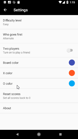 - Choose the color of the game board, X and O