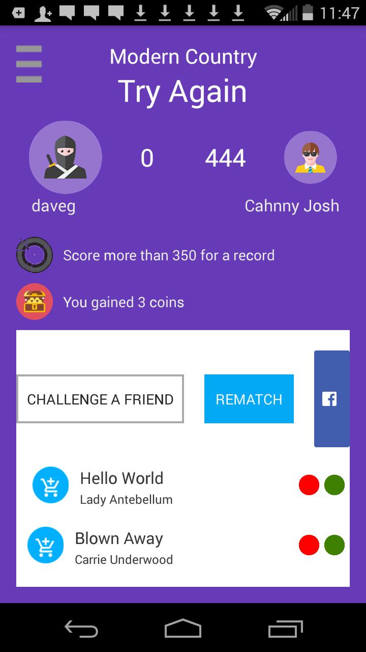 Brag about your results, earn records that appear on your achievement wall, and buy the songs after each challenge.
