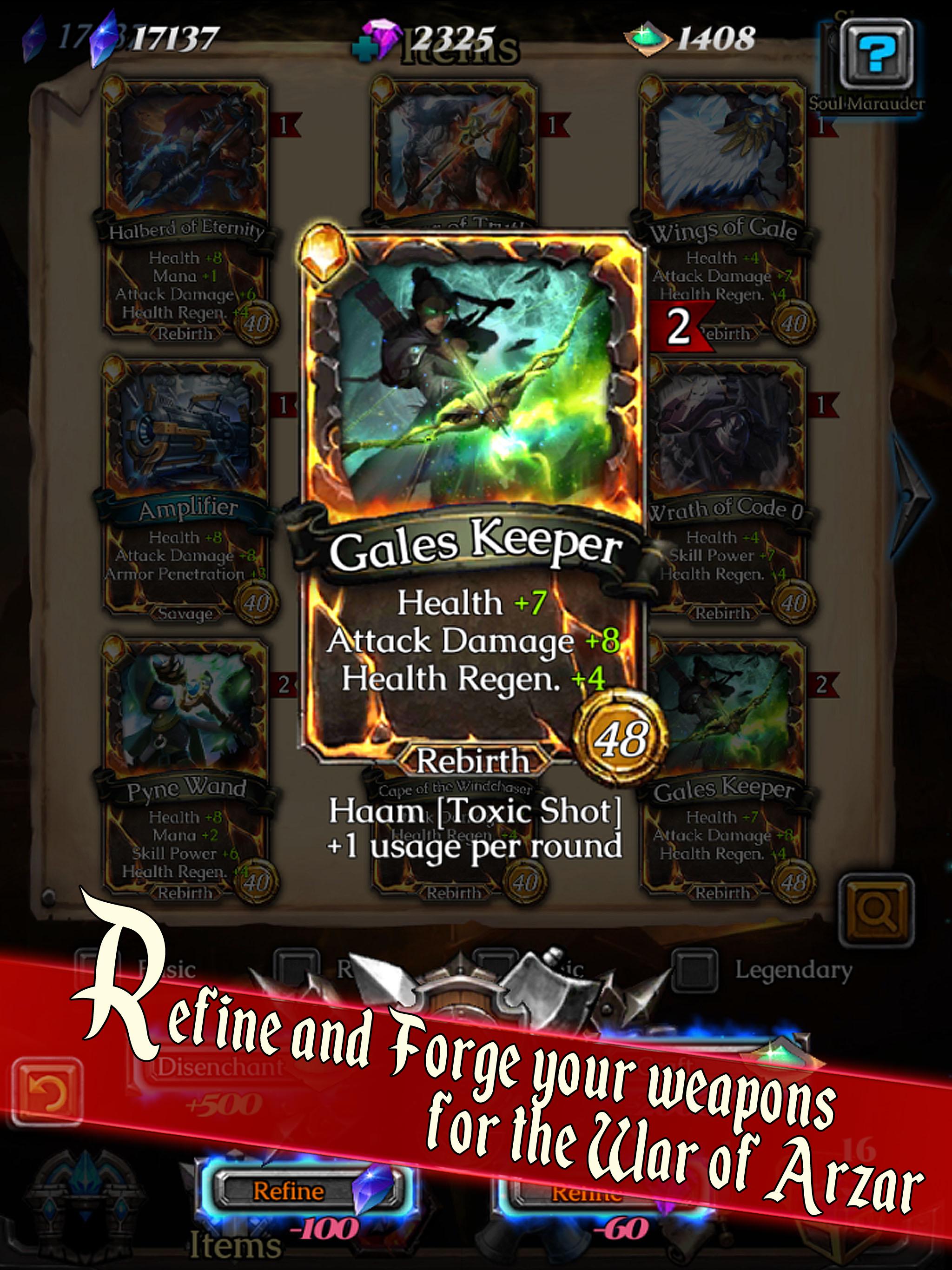 Choose and control your hero in a full strategy, innovative gameplay and fast-paced battle. In minutes, you could unleash powerful skills, equip gears, and seize advantage in the battlefield. Get ready and step into the world of Arzar with magic and mystery and fight with worthy opponents!