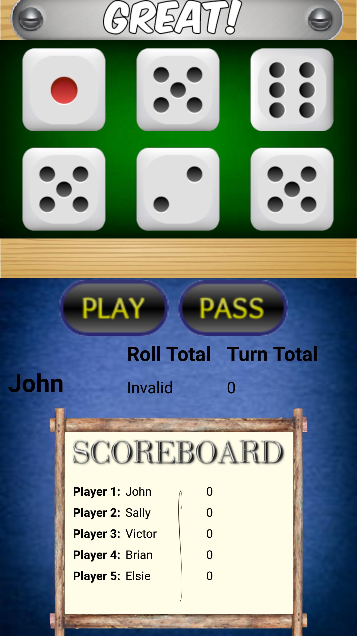 Crapola is a multi-player dice game similar to dice 10000 or farkle. The object of the game is to be the first player to reach 10000 points. A fun,quick game to play with family and friends.