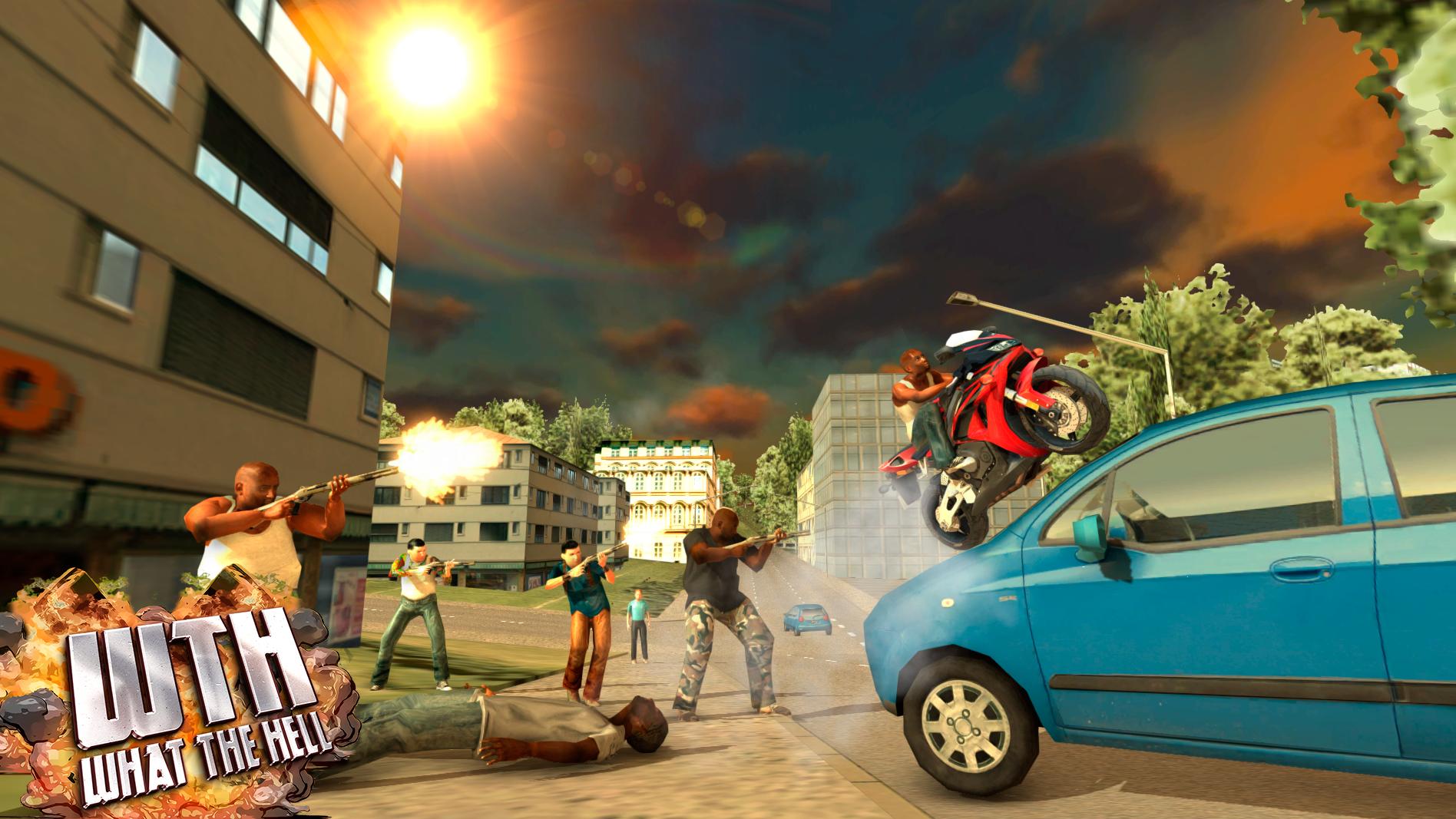 What The Hell is combination of killing people, stealing and driving cars, racing and doing all kind of different missions to earn cash by any means. The game takes place in the one of the roughest cities in the world. Get into a criminal chase as the police set in hot pursuit. Drive different cars from fancy luxury cars to beautiful import speed racing models. You need to race for money, honer and more through the streets of this epic 3D city. With each completed task you’ll earn cash, this hard earned money you can invest into real-world street racing models. Use the cash to unlock guns and graphic upgrades. Make the car the way you like it, enjoy the city but be ready to drive away fast when the police comes.