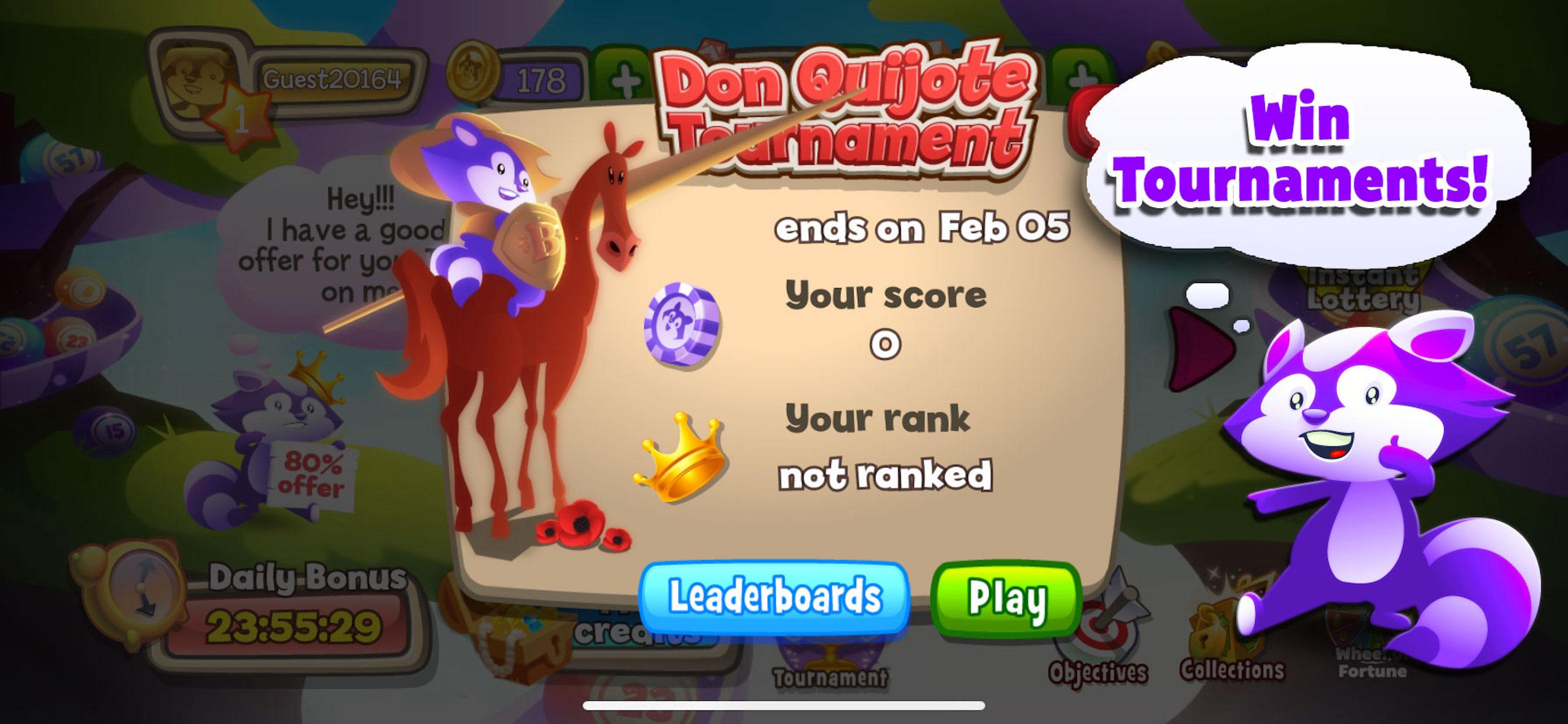 Start your journey with Bingo Raccoon , and we guarantee that you get unforgettable and rich experience. Daily and hourly bonuses , a lot of wins , mini games such as slots and wheel of fortune waiting for you. Enjoy !